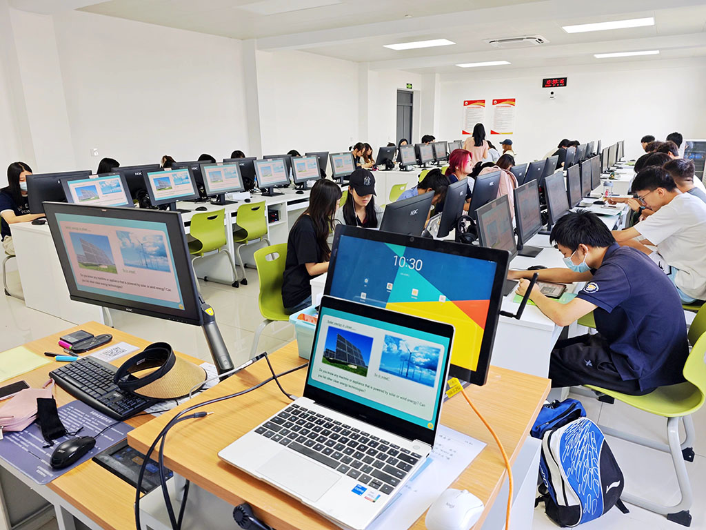 雄安的学校建设了两间外语多功能教室,用于进行外语学习和计算机综合学习。使用蓝云天数字语言实验室,不仅能够支持英语的听说读写,还支持多媒体教学功能,可以示范教师的操作或监看辅导学生的操作。为课堂计算机教学带来方便。