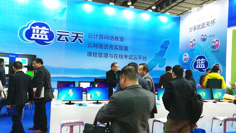 蓝云天在本次展会上带来的云计算网络教室是一种建立在校园网上的私有云服务。蓝云天云电脑管理平台、蓝云天“我的云电脑”、蓝云天课程管理云平台、蓝云天在线考试云平台、蓝云天协作式互动教学平台的五大云服务应用平台,为学校提供了从laaS、PaaS到SaaS的云计算网络教室全面解决方案。